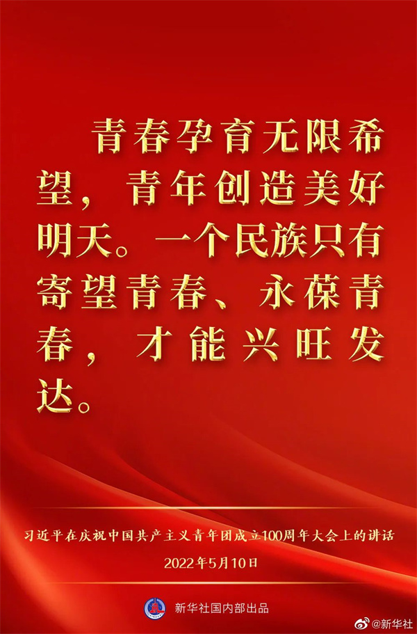 金句来了!习近平在庆祝中国共产主义青年团成立100周年大会上的讲话