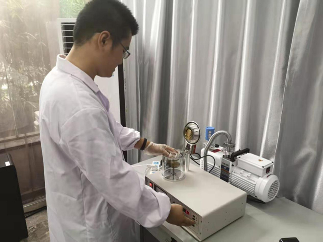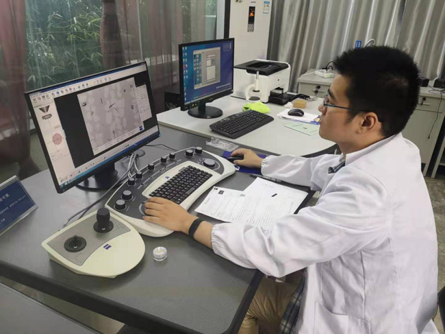 此次交流的样品为200粒刚玉颗粒,中心技术人员通过操作喷金仪、扫描电镜等多台先进仪器设备,选取多个测试点,对样品所含的盐类包裹体进行了专业分析检测。