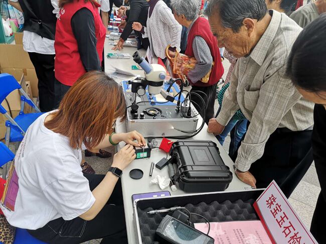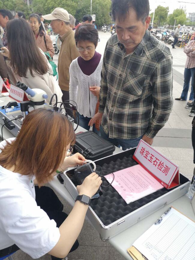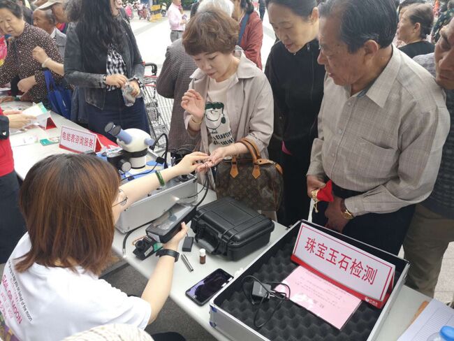 在活动现场,玉器中心检测人员为广大市民佩戴的珠宝首饰进行了现场免费鉴定,检验翡翠、和田玉、岫玉、玛瑙等品种数十批次,并向广大市民普及了珠宝鉴定相关知识,提醒群众在日常生活消费过程中要增强自我保护意识,受到广大群众的认可和赞誉。